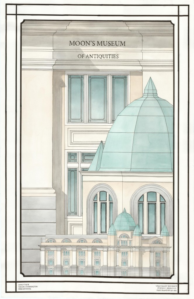 The Museum of Antiquities is a 50,000-square-foot structure designed to house a private collection of rare books and artifacts. The program includes various permanent and visiting galleries, administration spaces, public spaces (museum store), restaurant and dining areas, support spaces, and a performance/education/event center. It is located near the historic downtown and waterfront of Vancouver, Washington.