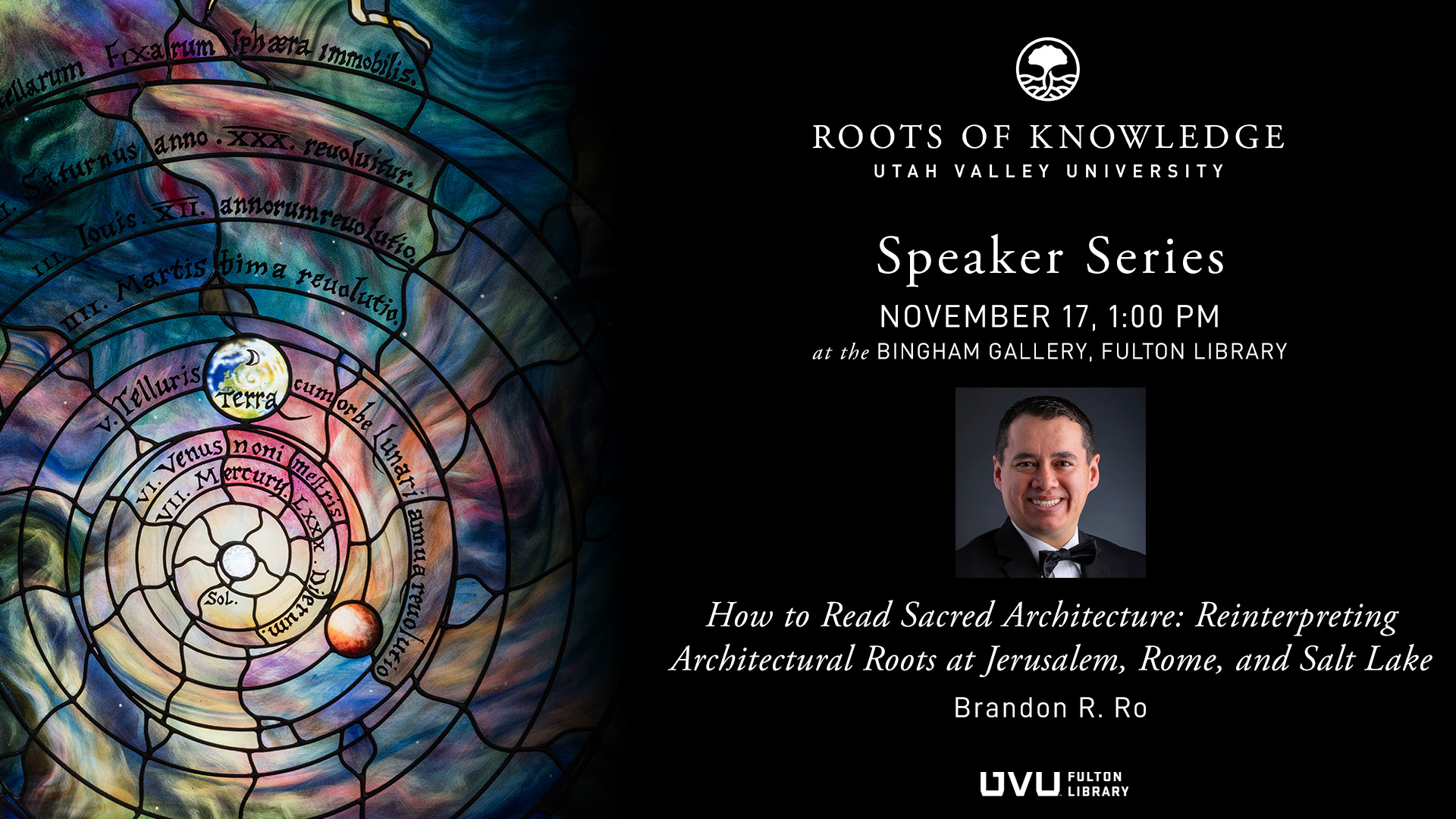 CITATION: Brandon R. Ro, “How to Read Sacred Architecture: Reinterpreting Architectural Roots at Jerusalem, Rome, and Salt Lake,” Roots of Knowledge Speaker Series, Fulton Library, Utah Valley University (November 17, 2022). Available online: https://youtu.be/-urthKneS3k?si=VgSnUhWJKur2Sl8z